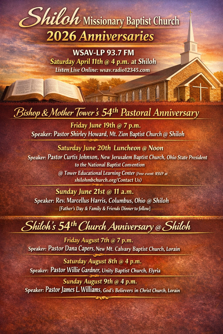 Church Anniversary August 7 -9 7 p.m., 4 p.m., 4 p.m.